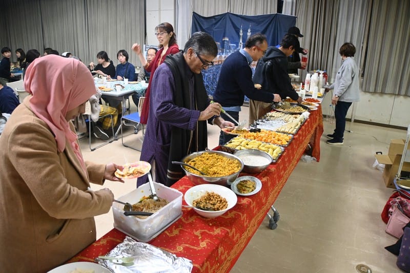 齋戒月期間,穆斯林從日出到日落禁止飲食,但日落後會在家中或清真寺共同用餐,這便是「開齋飯」(イフタール)。當天日本人也一同參與了用餐。